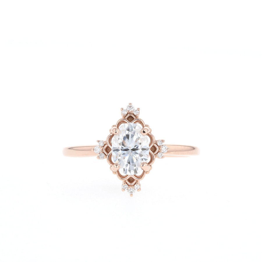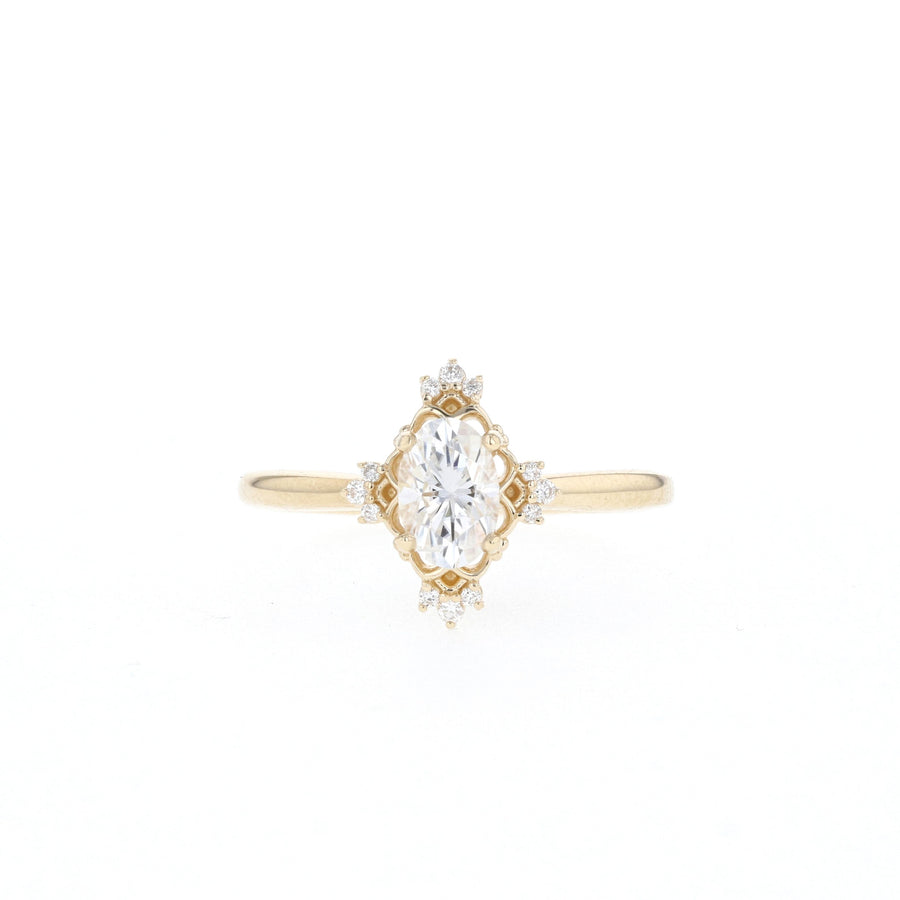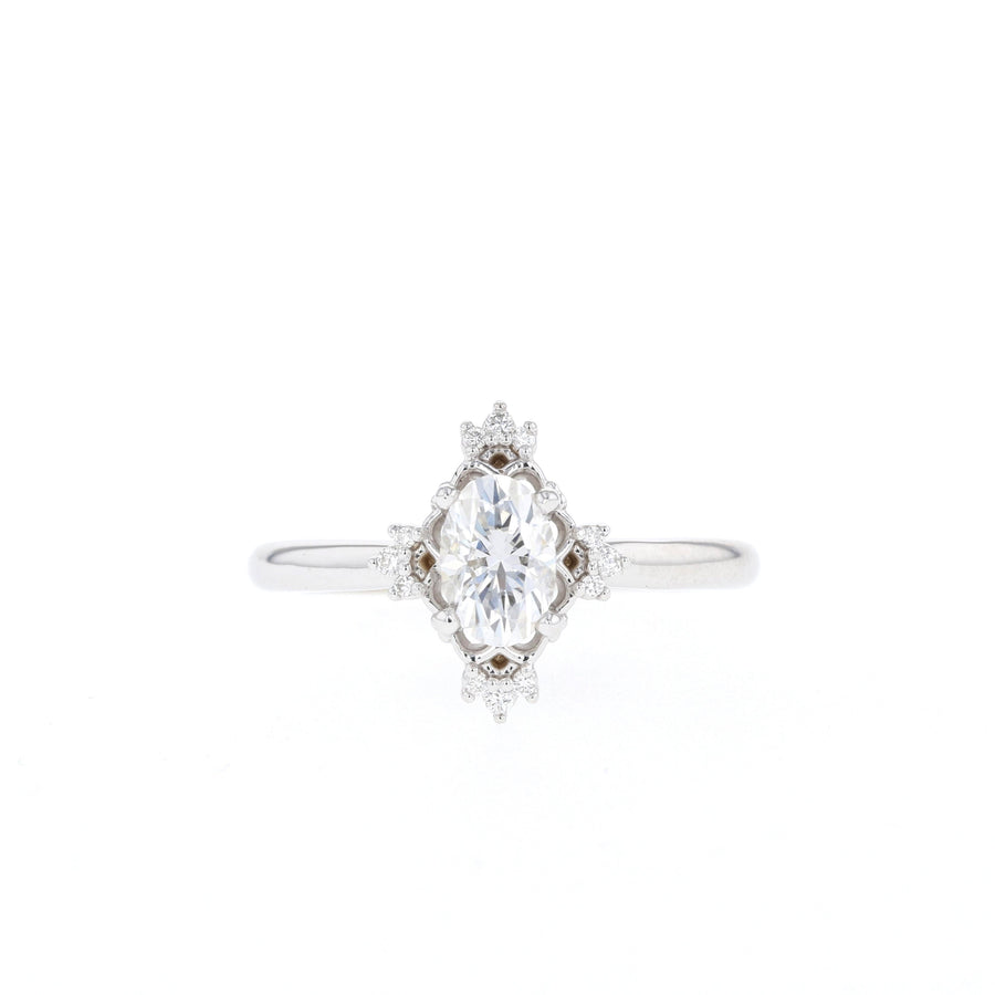 0.43-1.33 CT Oval Cut Cluster Halo Moissanite Engagement Ring