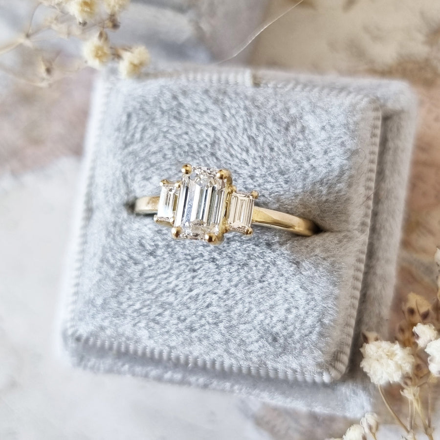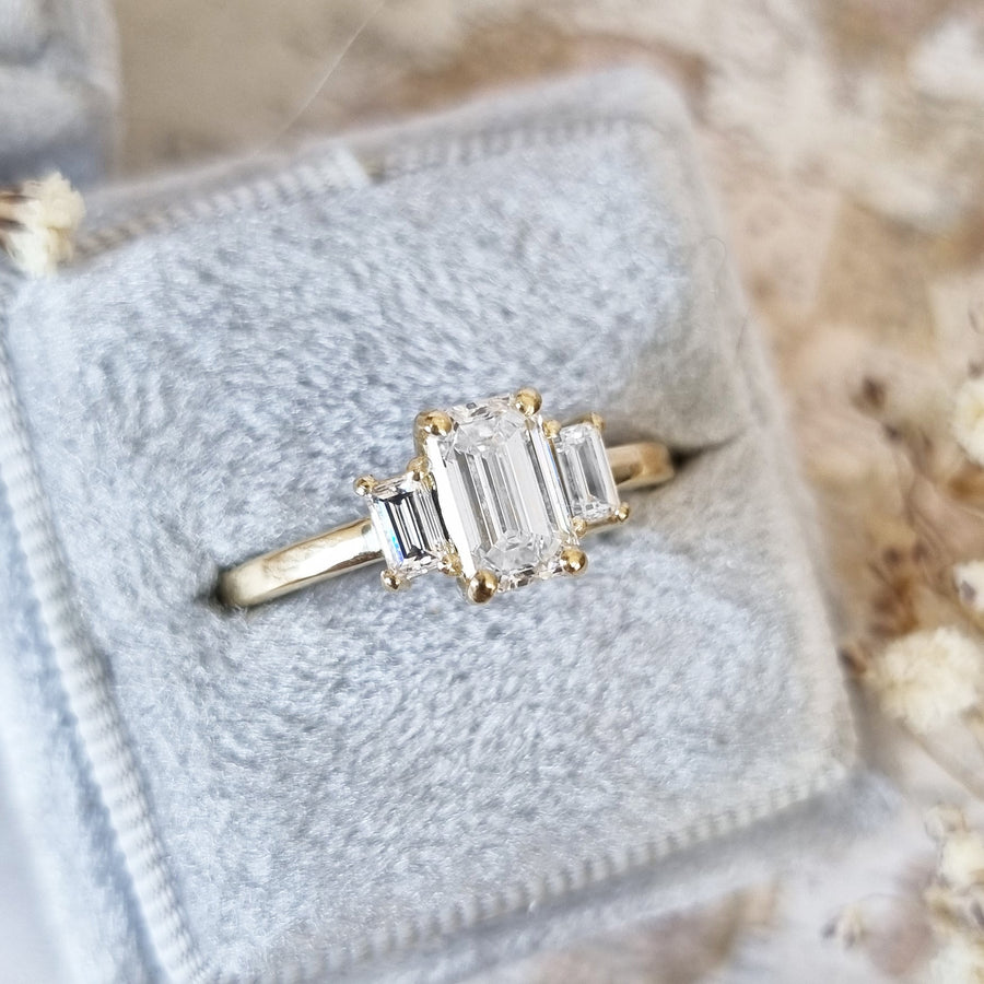 1.10 - 3.10 CT Emerald Cut Three Stone Lab Grown Diamond Engagement Ring