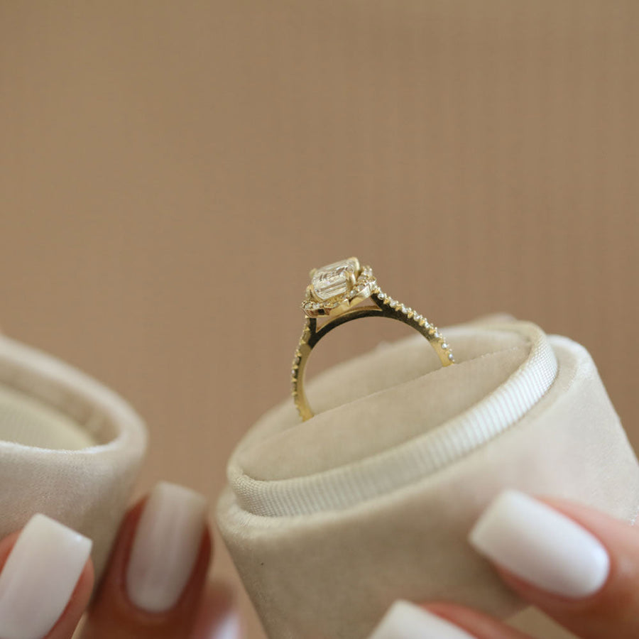 1.55 CT Emerald Halo Pave Moissanite Engagement Ring