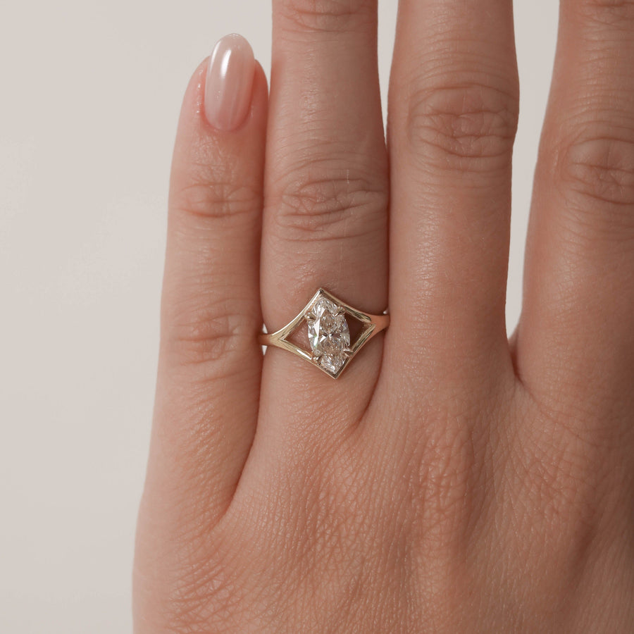 ✦ The Ring Shown in the Picture Holds a Beautiful 1 CT Marquise Cut Moissanite.