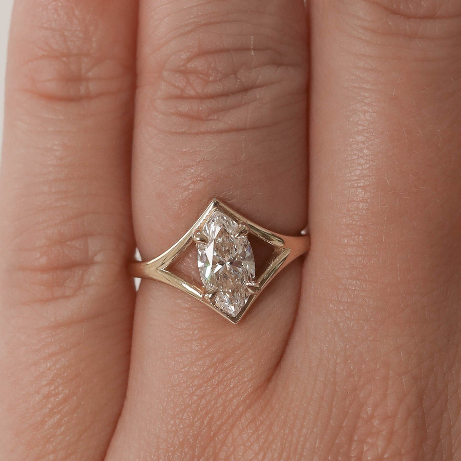 1 CT Marquise Cut Solitaire Split Shank Moissanite Engagement Ring