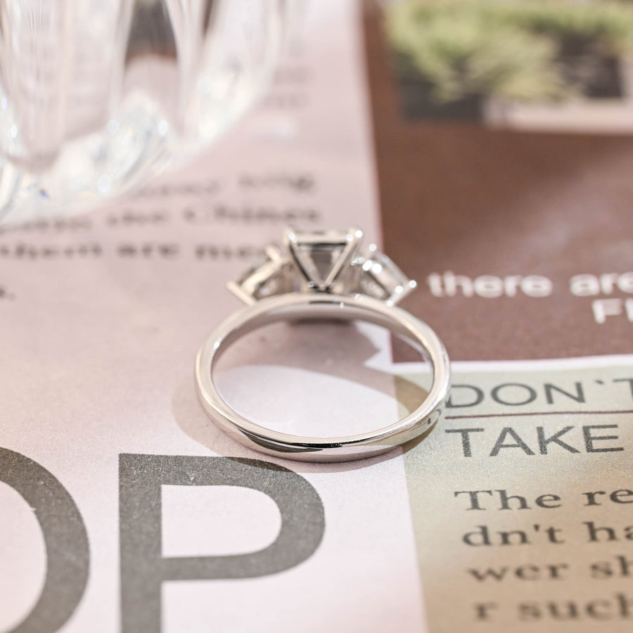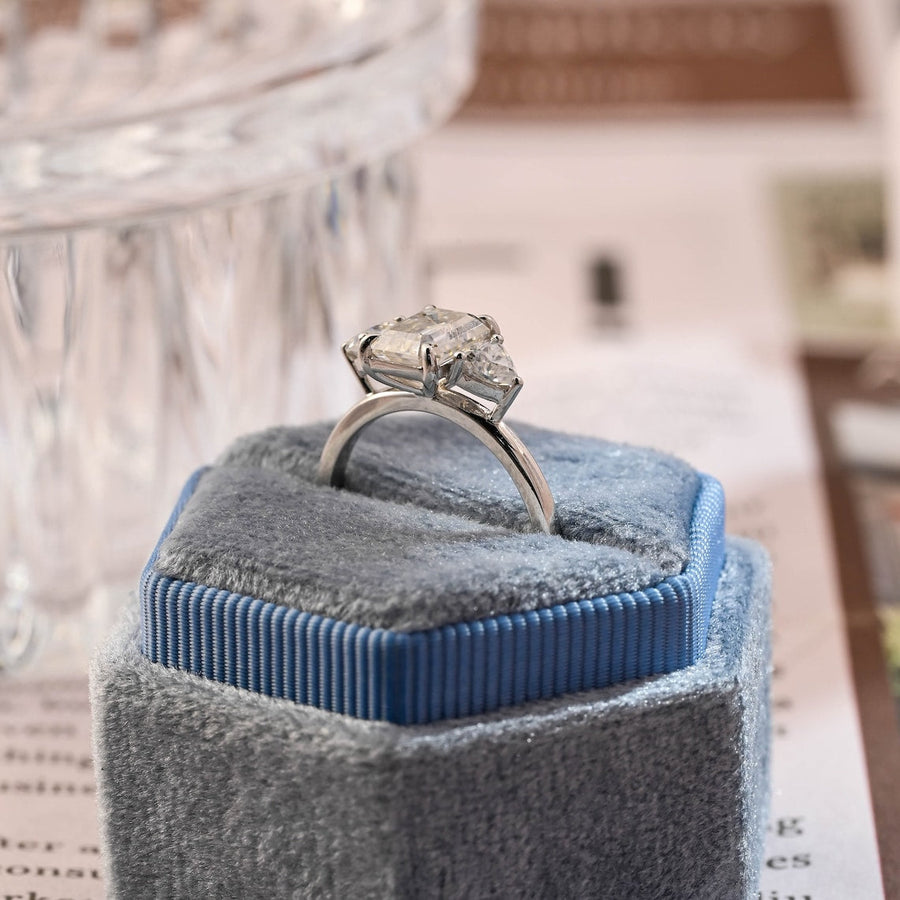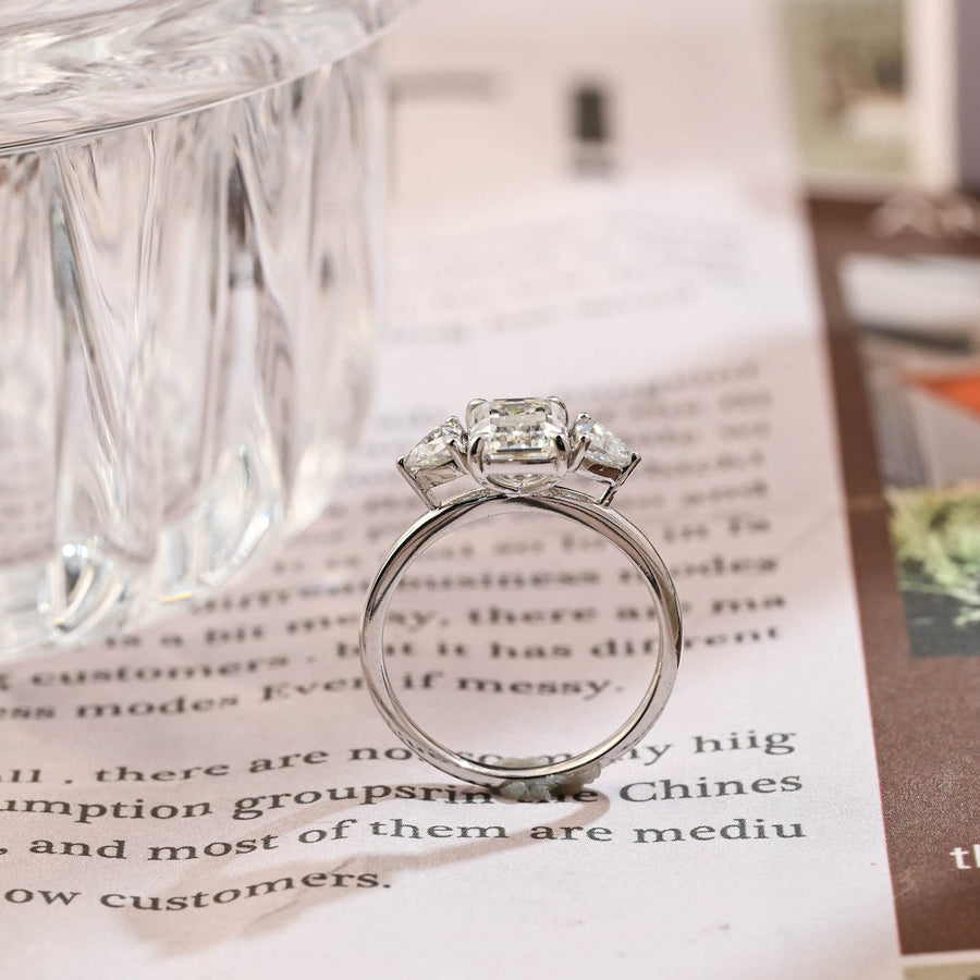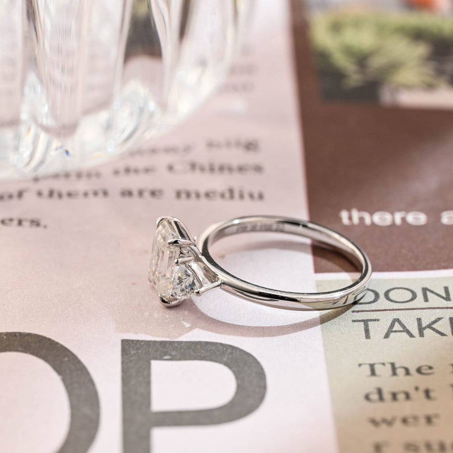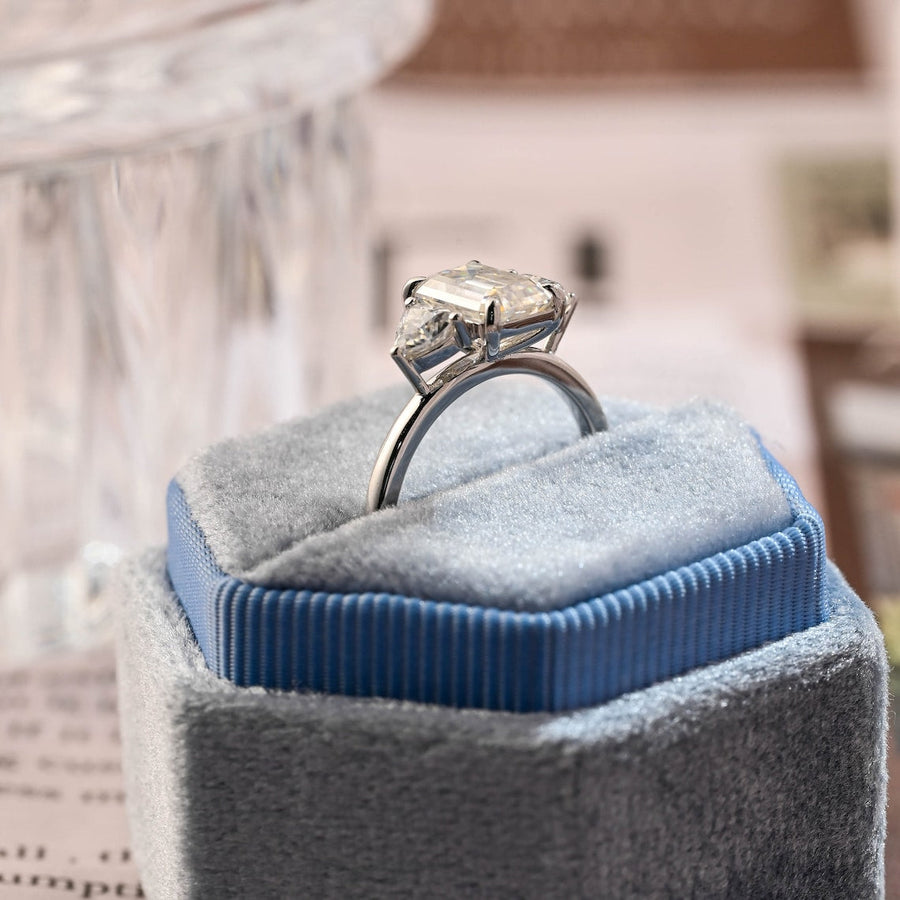 1.0-3.0 CT Emerald Lab Grown Diamond Three Stone Style Engagement Ring