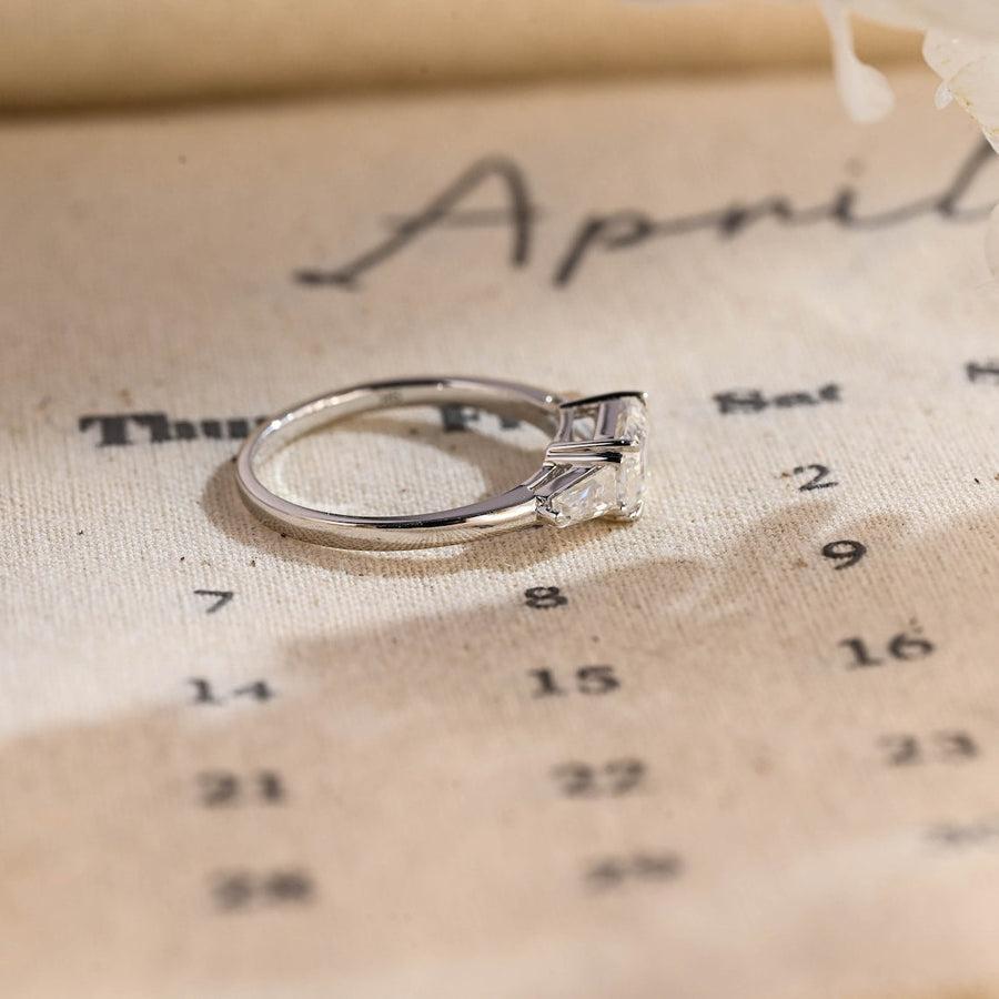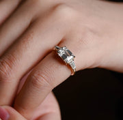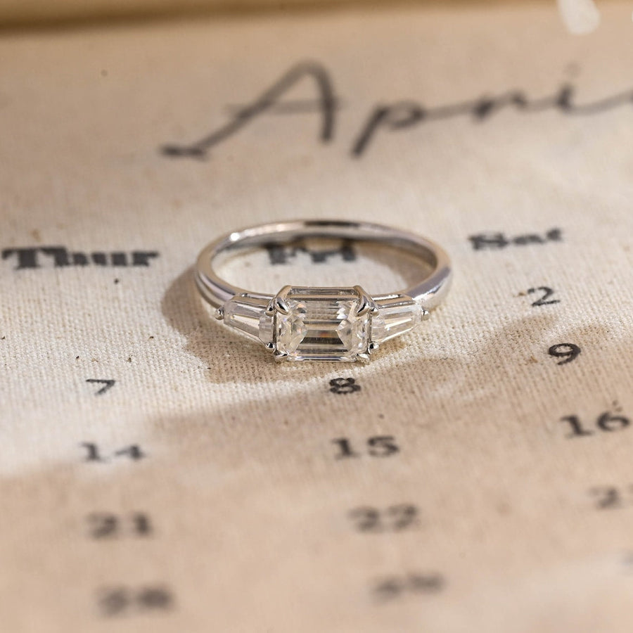 1.0-3.0 CT Emerald Lab Grown Diamond Three Stone Style Engagement Ring