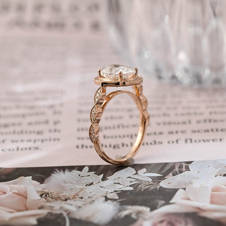 1.0-3.0 CT Oval Lab Grown Diamond halo Setting Engagement Ring