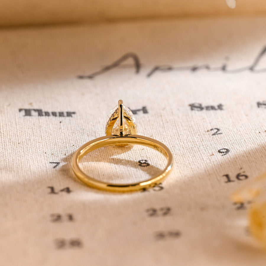1.0 - 3.0 CT Pear Lab Grown Diamond Hidden Halo Solitaire Engagement Ring