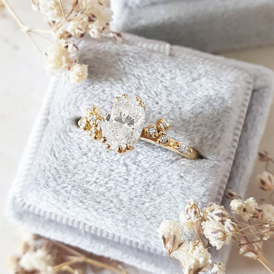 1.0 - 3.0 CT Oval Cut Cluster Style Lab Grown Diamond Engagement Ring