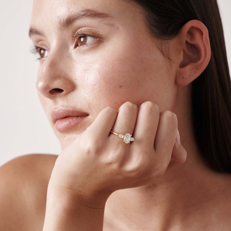 1.0-3.0 CT Oval Lab Grown Diamond Three Stone Style Engagement Ring