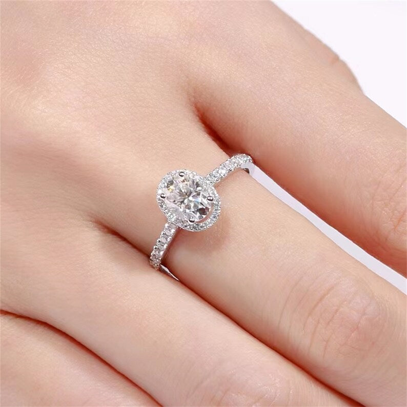 1.0-3.0 CT Oval Lab Grown Diamond halo Pave Setting Engagement Ring