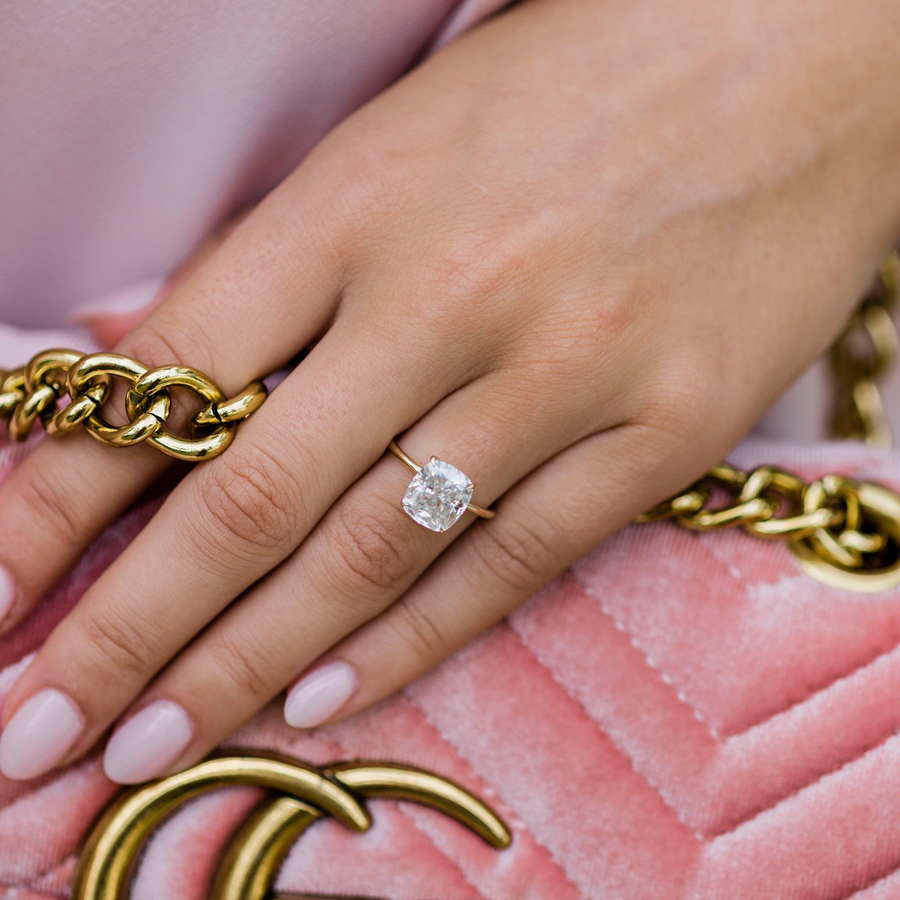 ✦ The Ring Shown in the Picture Holds a Beautiful 2.5 CT Cushion Cut Moissanite.