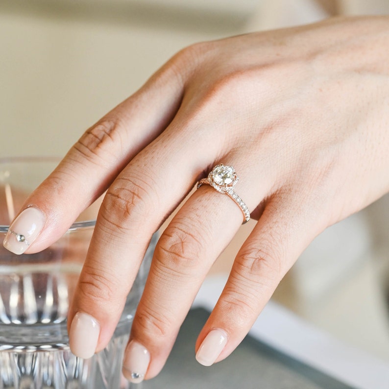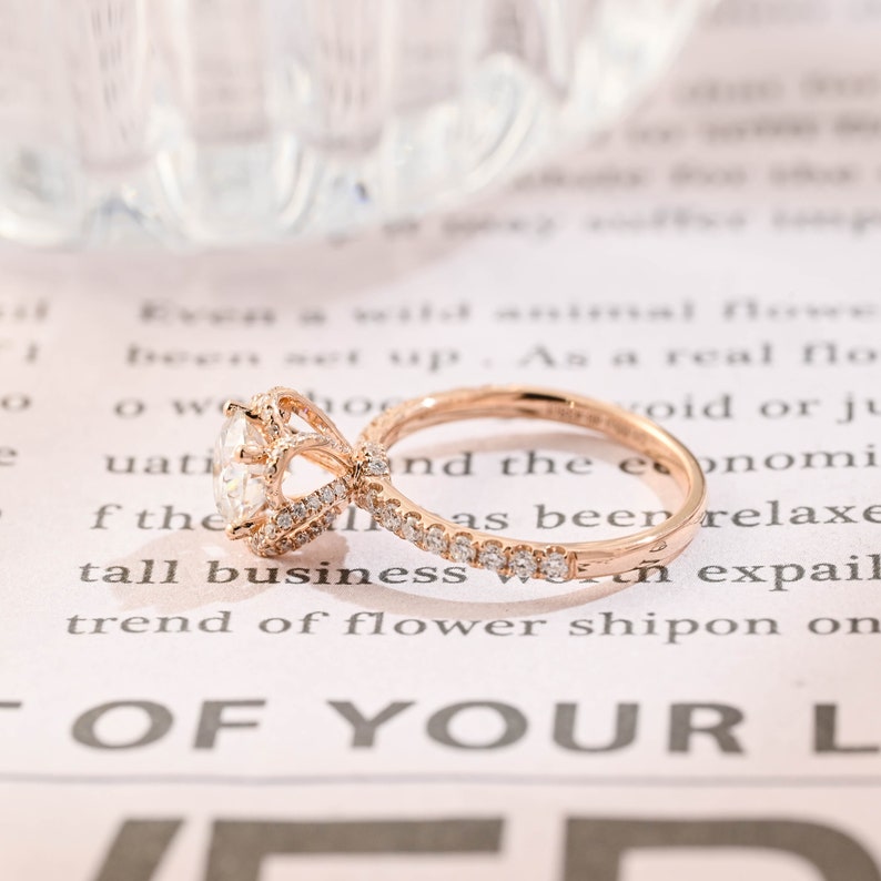 1.0 - 3.0 CT Round Lab Grown Diamond Unique Halo Pave Setting Engagement Ring