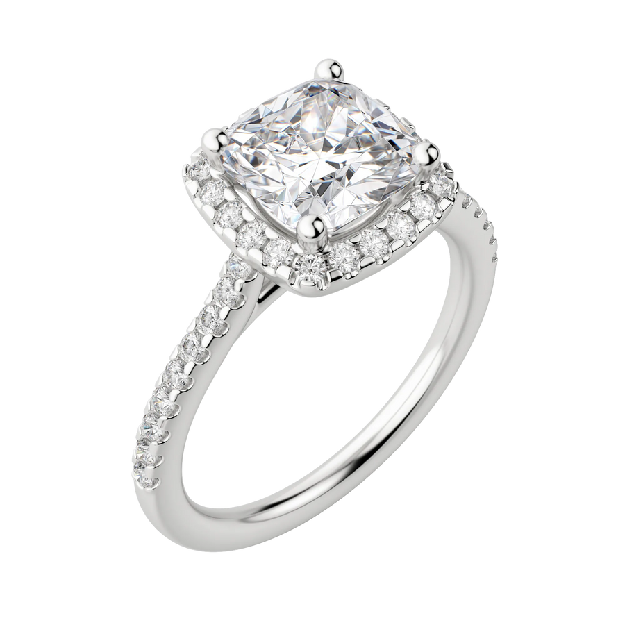 2.15 CT Cushion Cut Halo Moissanite Engagement Ring