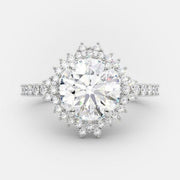 2.0 CT Round Cut Cluster Halo Style Moissanite Engagement Ring