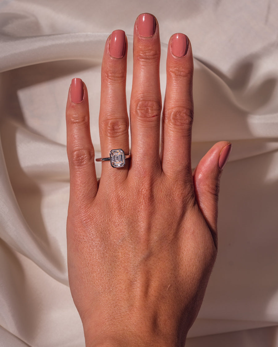 2.30 CT Emerald Cut Solitaire Bezel Setting Moissanite Engagement Ring