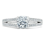 1.0 CT Cushion Cut Solitaire Split Shank Setting Moissanite Engagement Ring