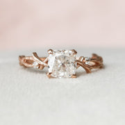 1.0 CT Cushion Solitaire & Twig Setting Moissanite Engagement Ring