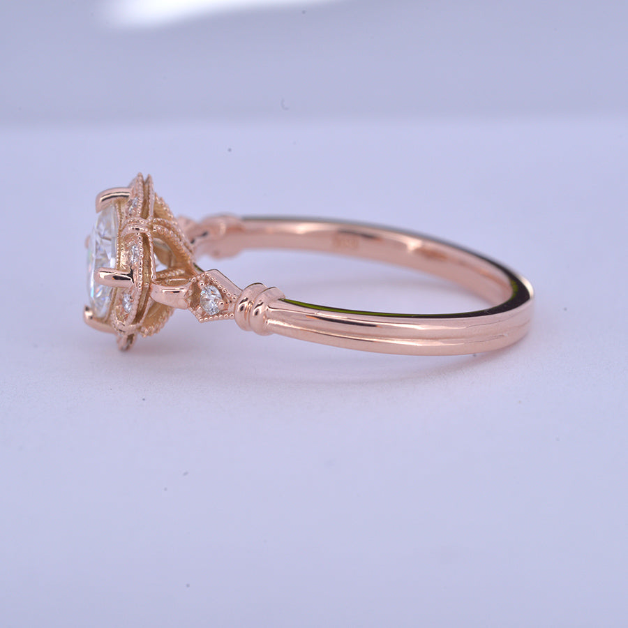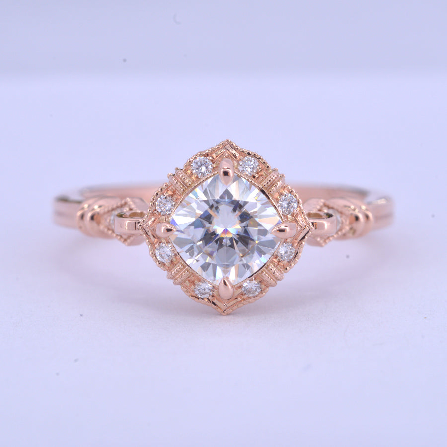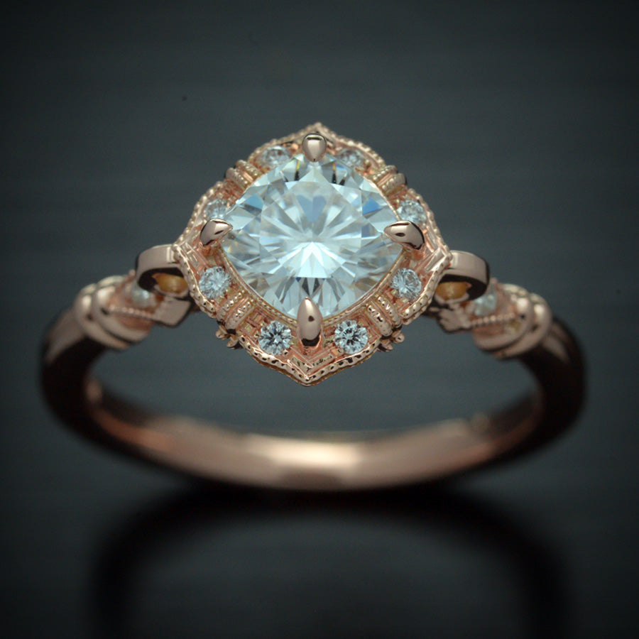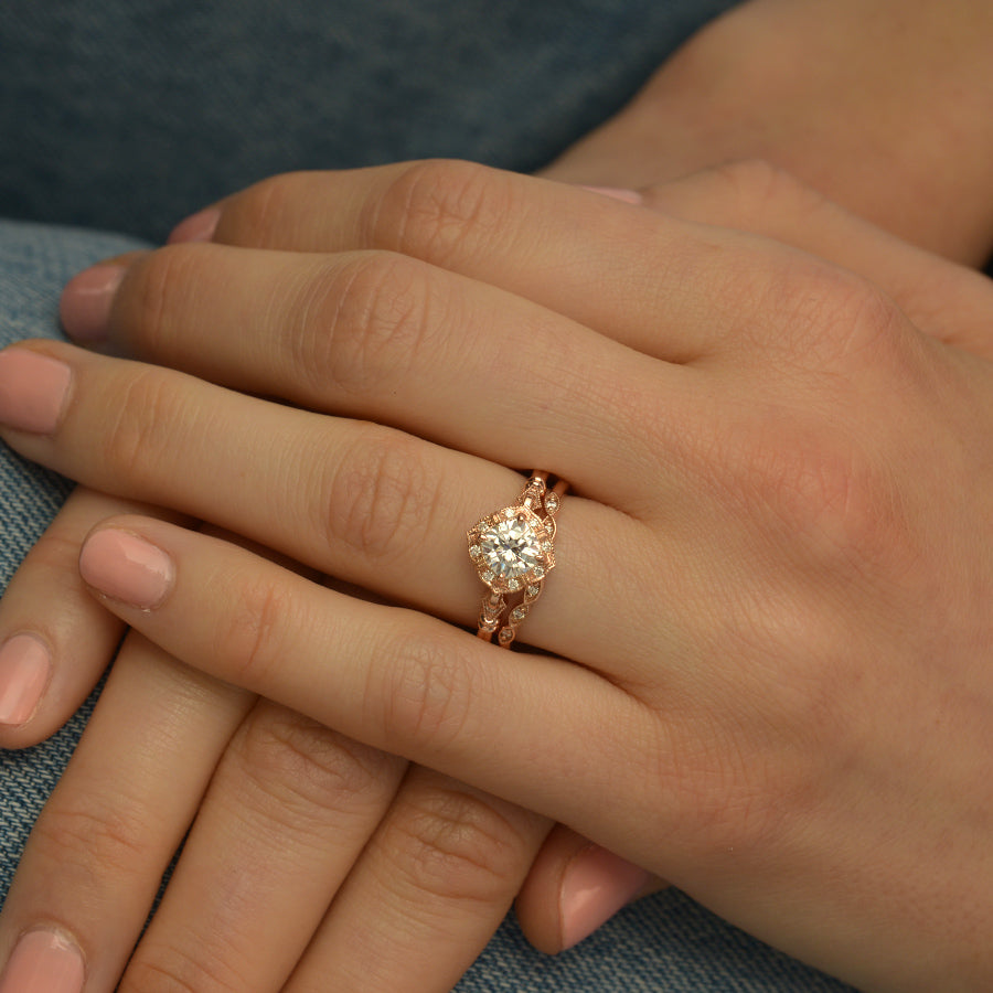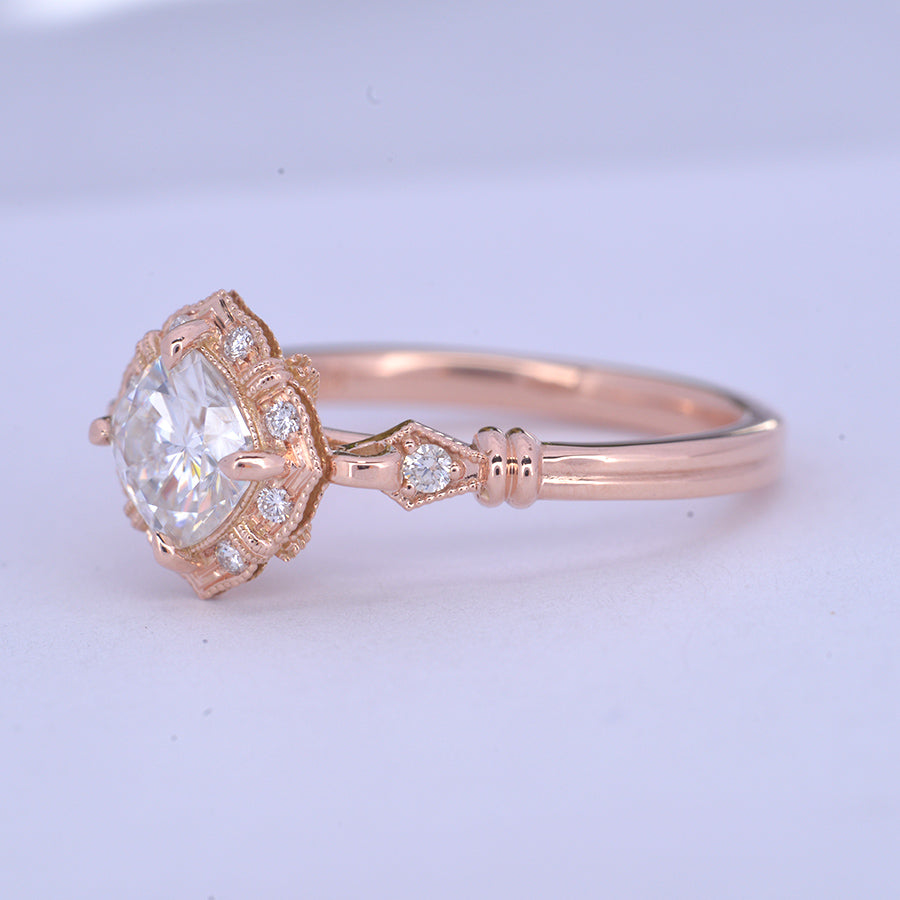 1.0 CT Round Cut Vintage Moissanite Engagement Ring