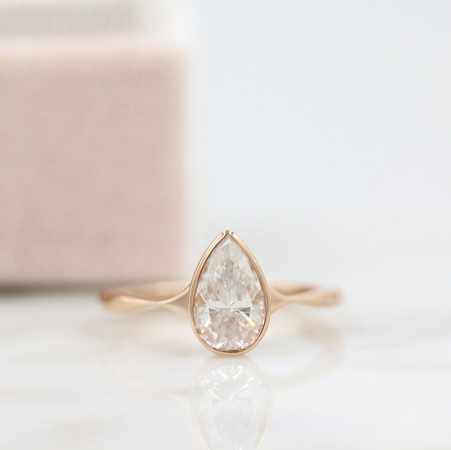 1.33 CT Pear Cut Bezel Solitaire Moissanite Engagement Ring