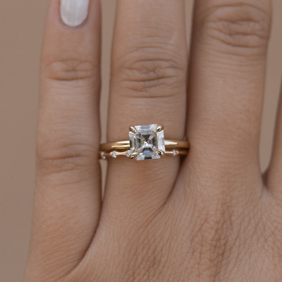✦ The Ring Shown in the Picture Holds a Beautiful 0.07 TCW Round Cut Moissanite.