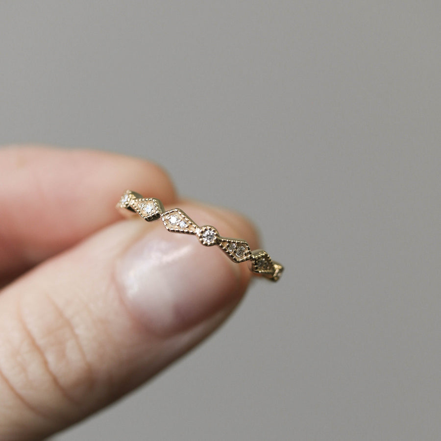 0.17 TCW Round Cut Milgrain Art Deco Moissanite Wedding Band