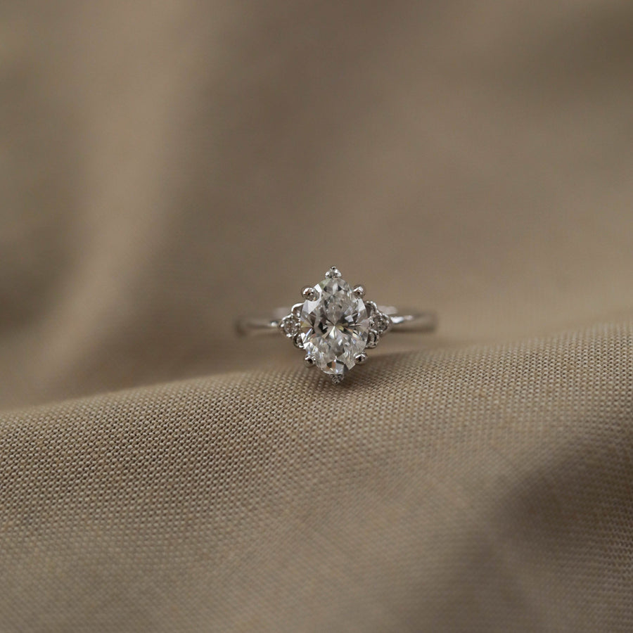 0.21 CT-0.47 CT Oval Cut Cluster Moissanite Engagement Ring