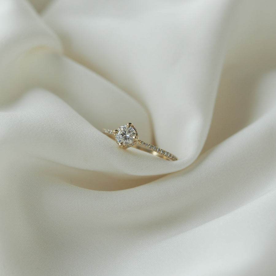 0.45 CT Round Cut Solitaire Hidden Halo & Pave Moissanite Engagement Ring