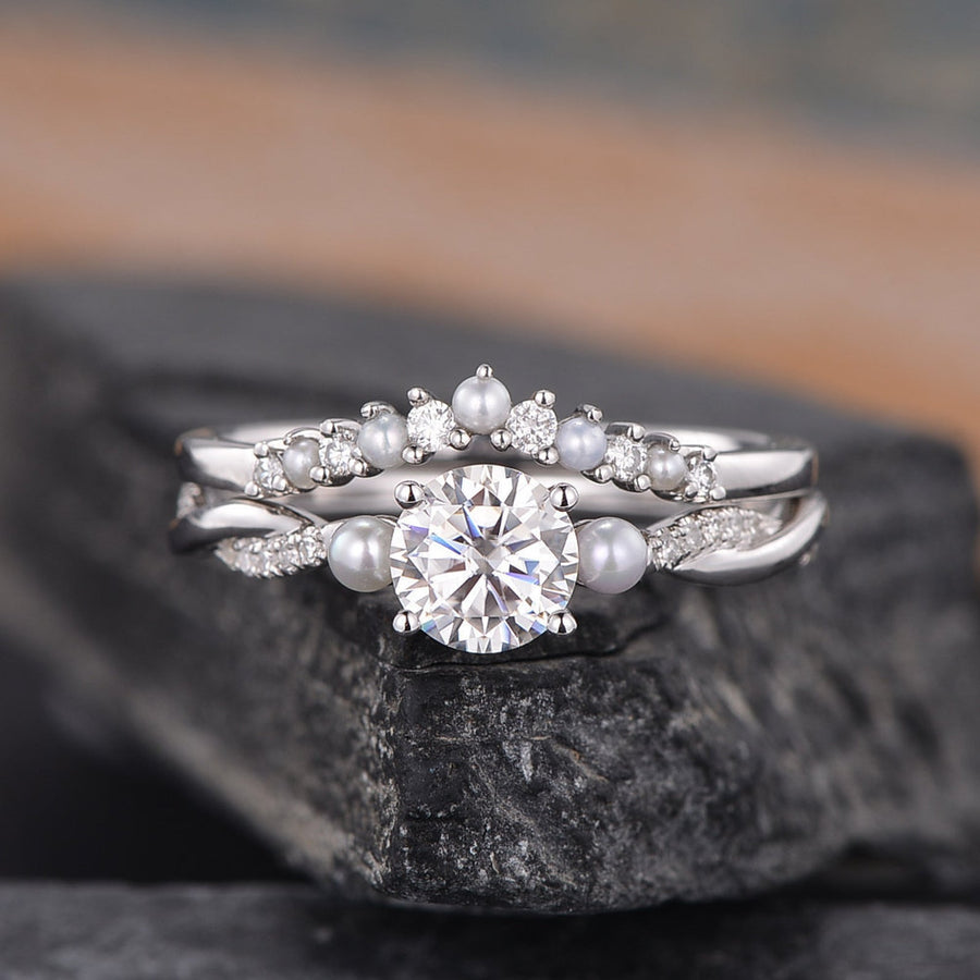 0.50 CT Round Twisted Pave Moissanite Bridal Ring Set