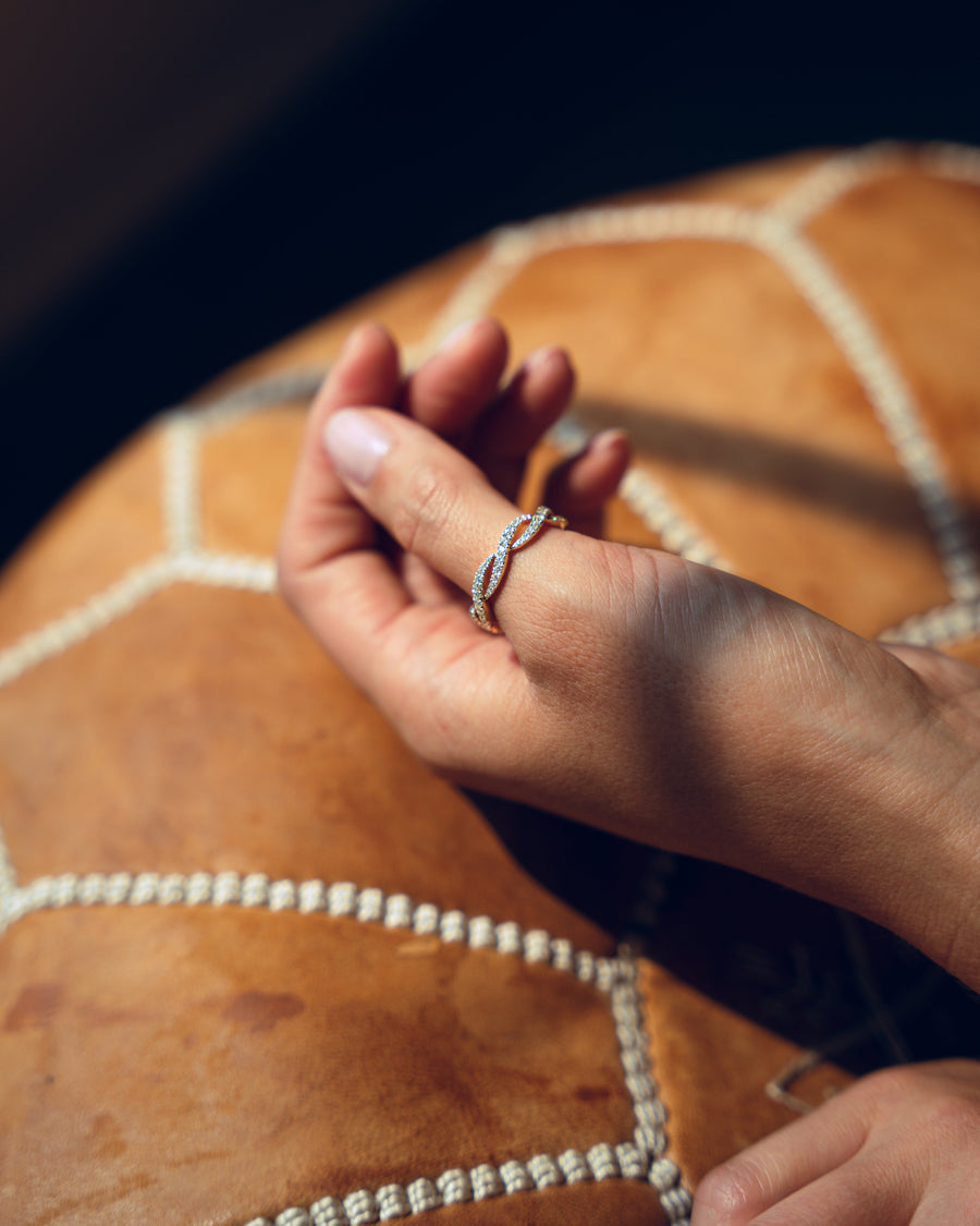 0.54 CT Round Criss Cross Style Moissanite Wedding Band