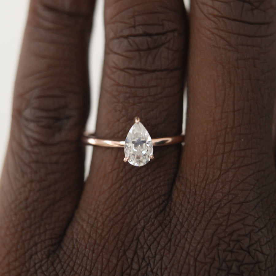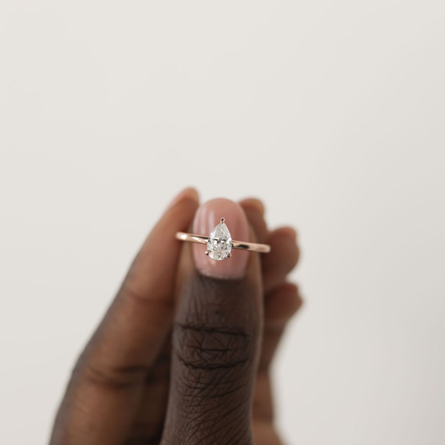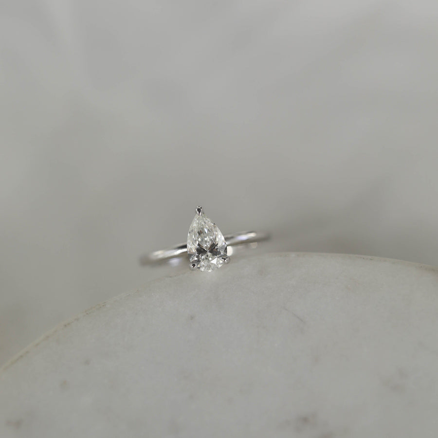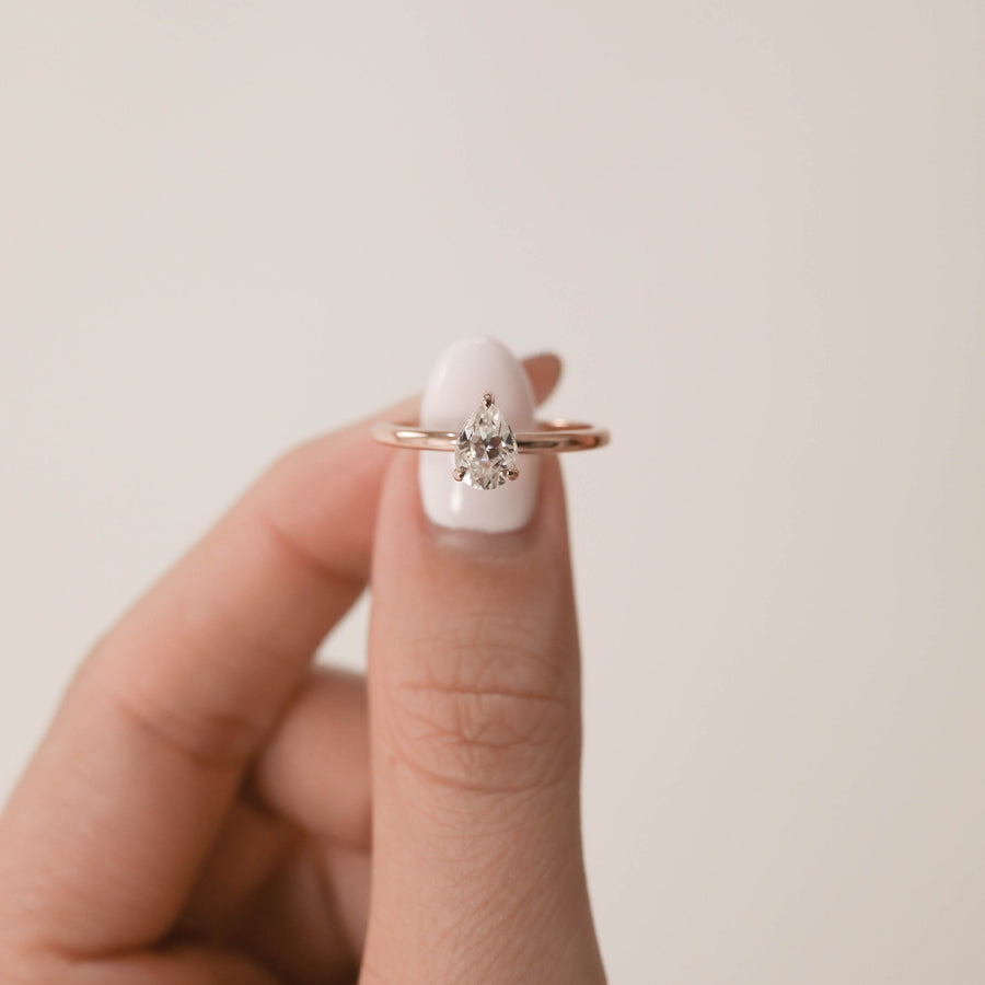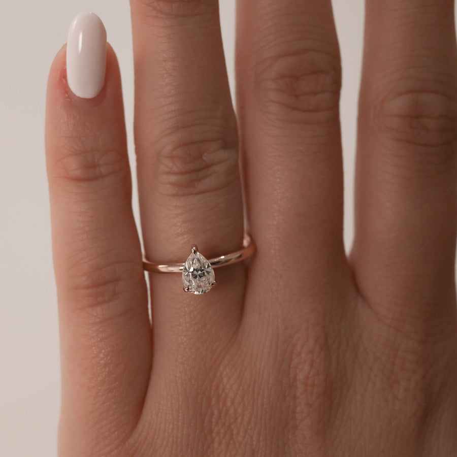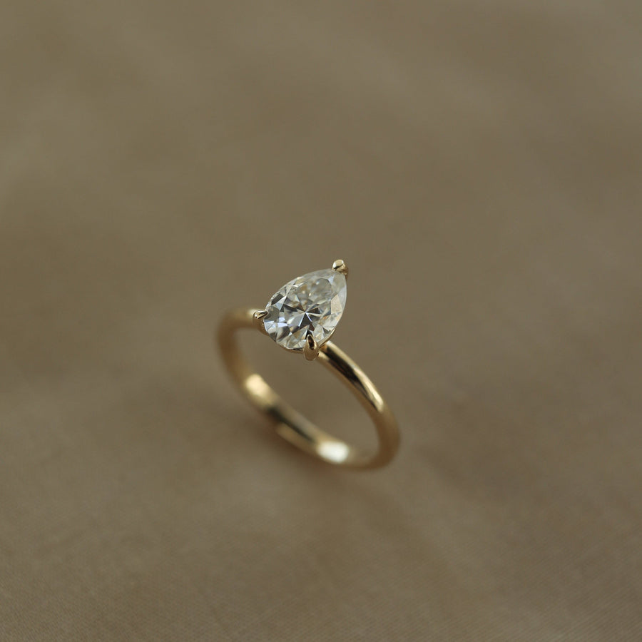 0.69 - 1.33 CT Pear Cut Solitaire Moissanite Engagement Ring