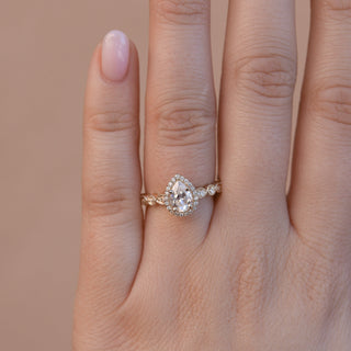 0.69-1.93 CT Pear Cut Halo & Pave Moissanite Engagement Ring