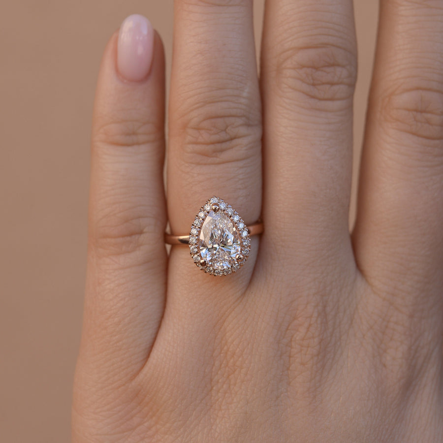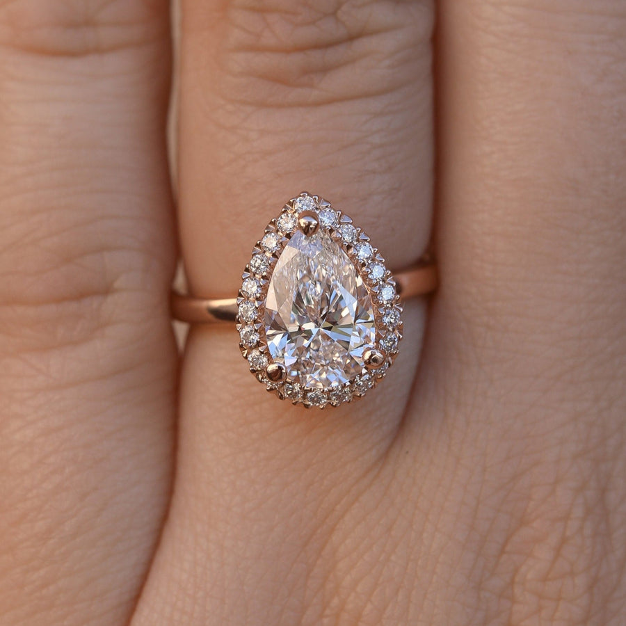 0.69 CT-1.93 CT Pear Cut Halo Moissanite Engagement Ring