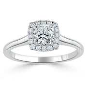 0.75 CT Cushion Cut Halo Moissanite Engagement Ring