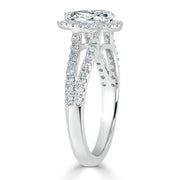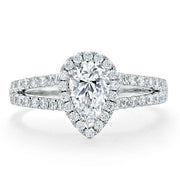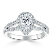 0.75 CT Pear Cut Halo Split Shank Setting Moissanite Engagement Ring