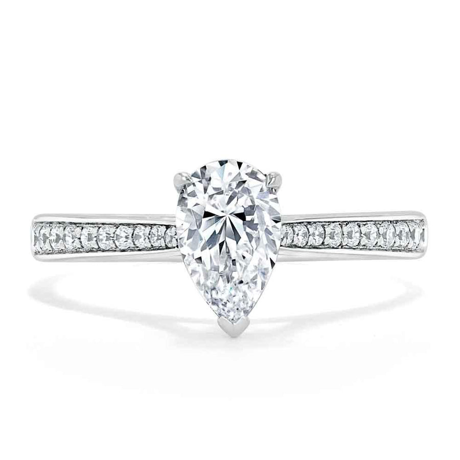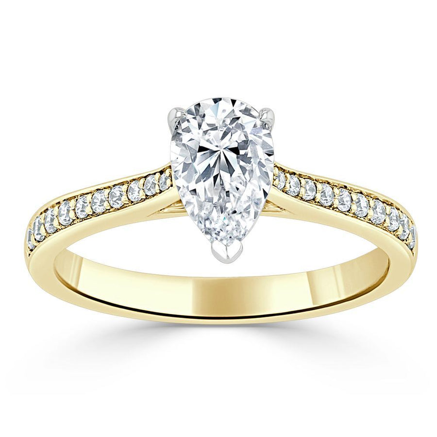 0.75 CT Pear Cut Solitaire Engagement Ring With Channel Pave Setting
