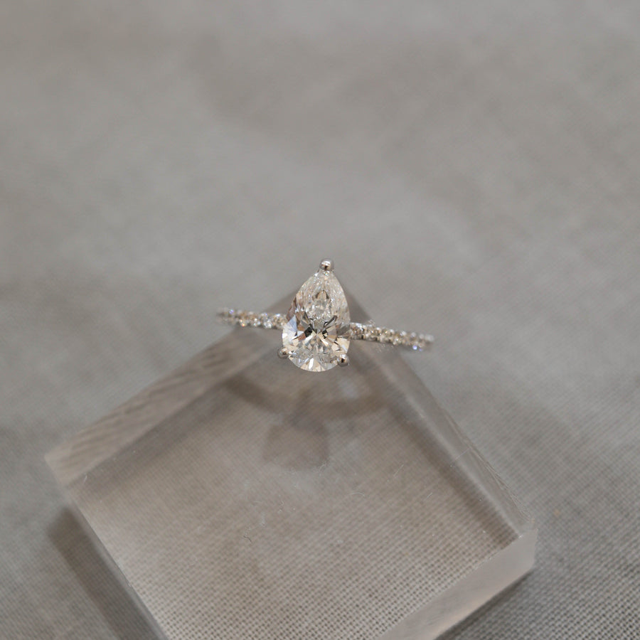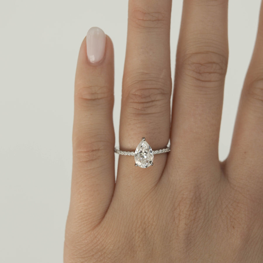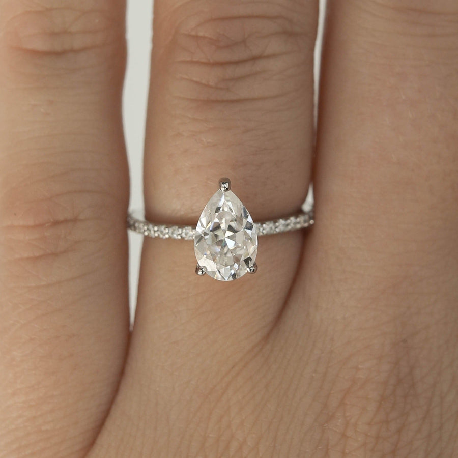 0.85-1.93 CT Pear Cut Solitaire Moissanite Engagement Ring
