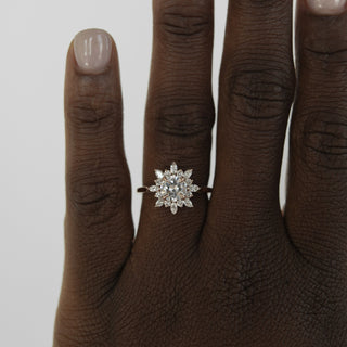0.88 CT Round Cut Cluster Halo Moissanite Engagement Ring