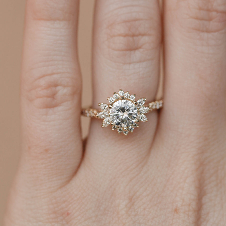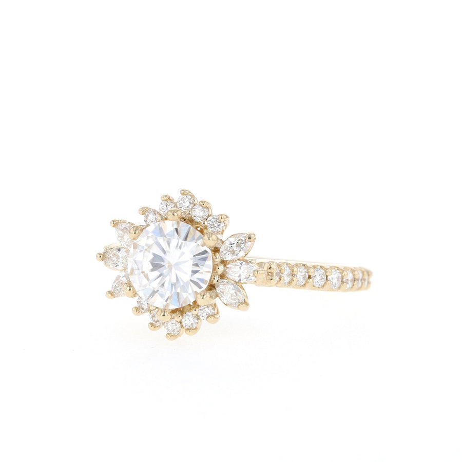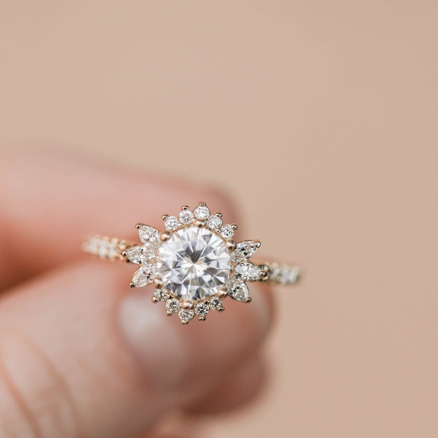 0.88 CT Round Cut Cluster Moissanite Engagement Ring