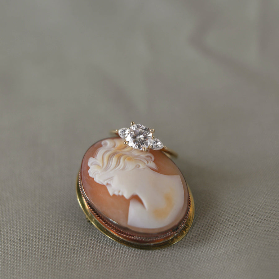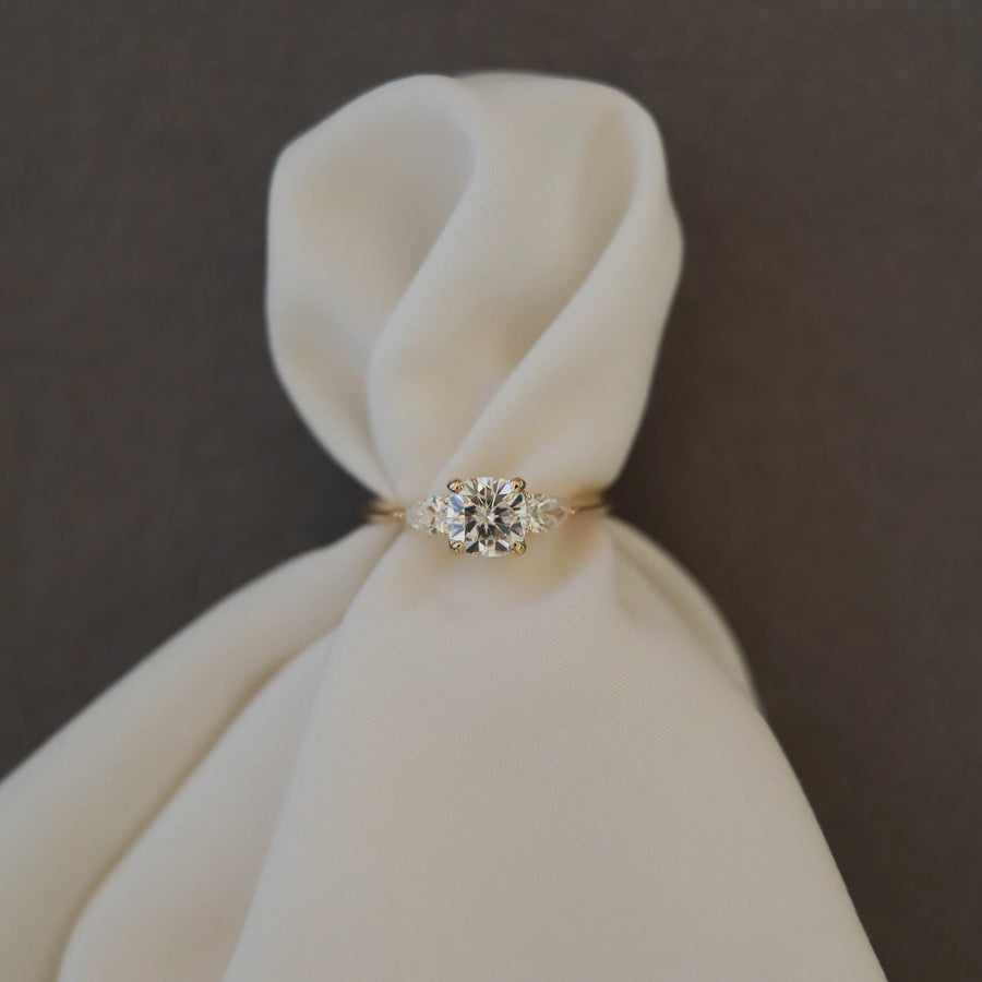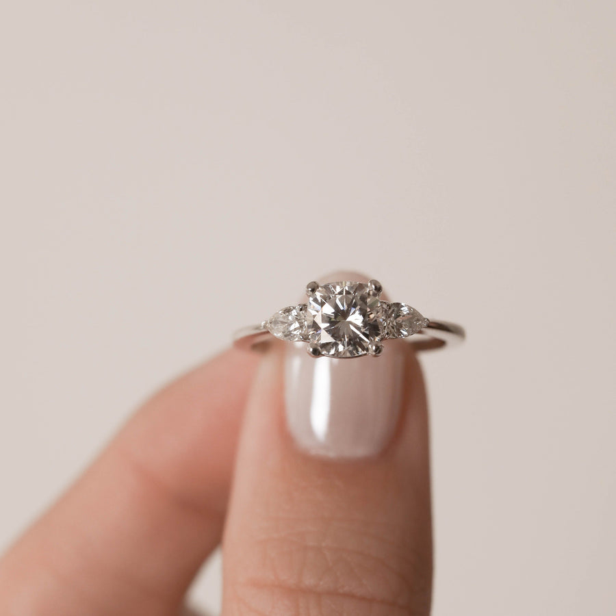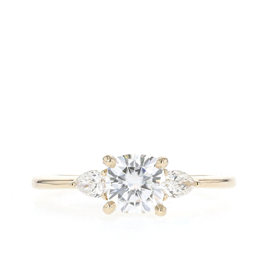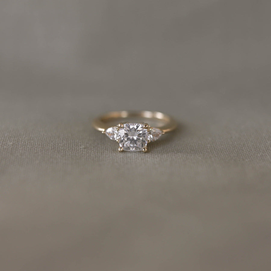 0.96 CT Cushion Cut Three Stone Moissanite Engagement Ring