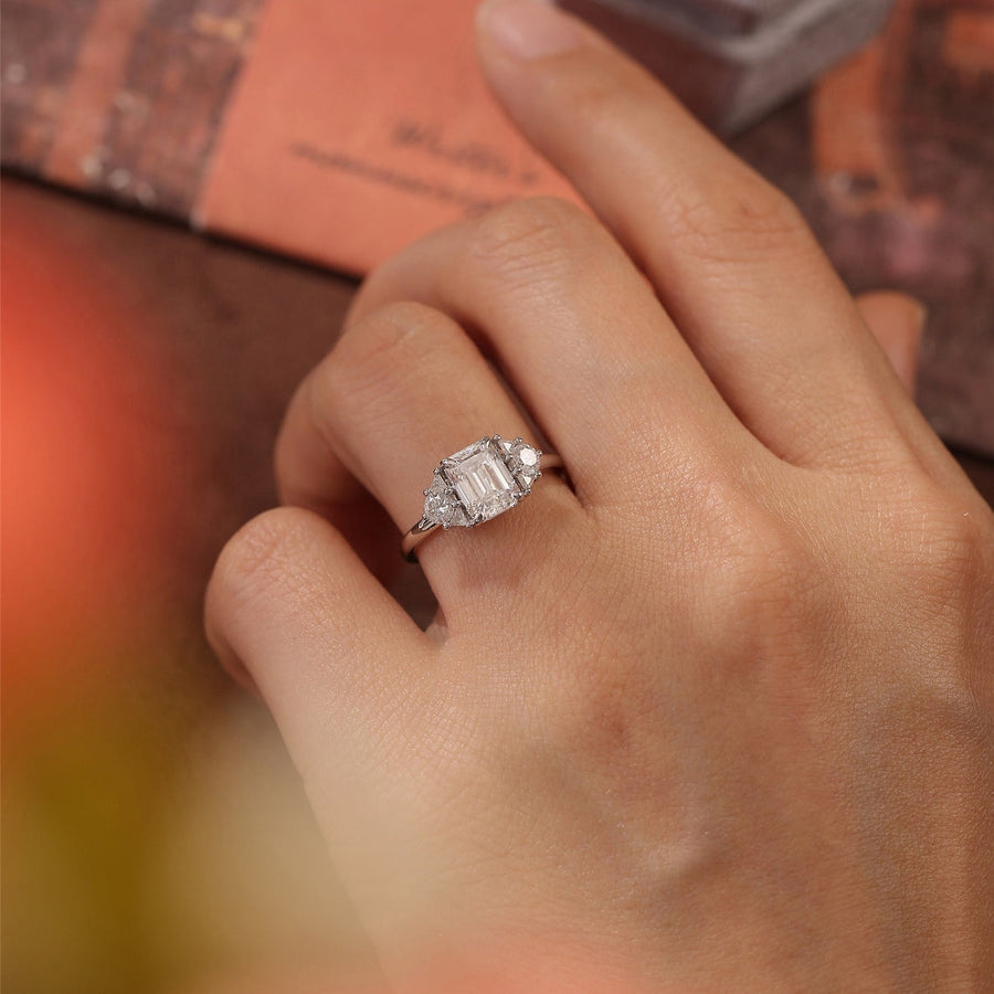 1.0-3.0 CT Emerald Cut Lab Grown Diamond Cluster solitaire Setting Engagement Ring