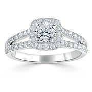 1.0 CT Cushion Cut Halo Split Shank Setting Moissanite Engagement Ring