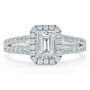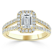 1.0 CT Emerald Cut Halo Split Shank Setting Moissanite Engagement Ring