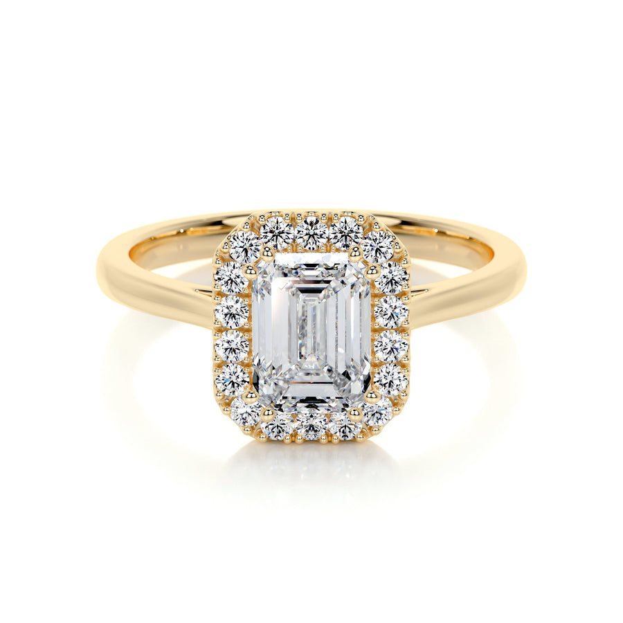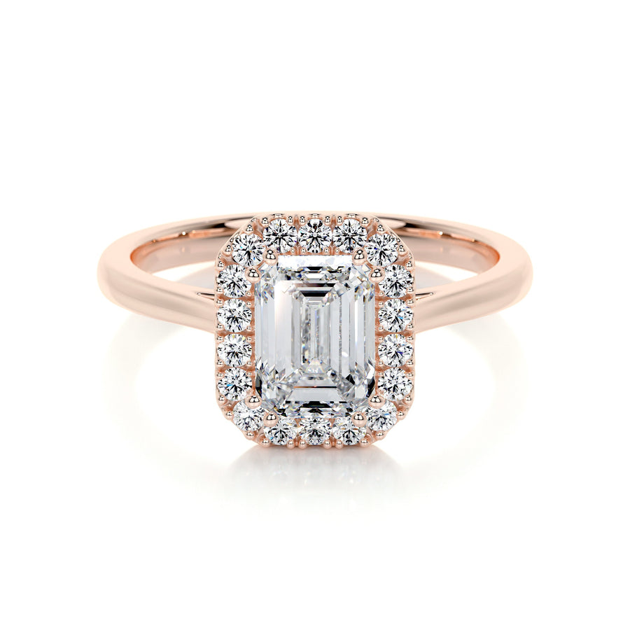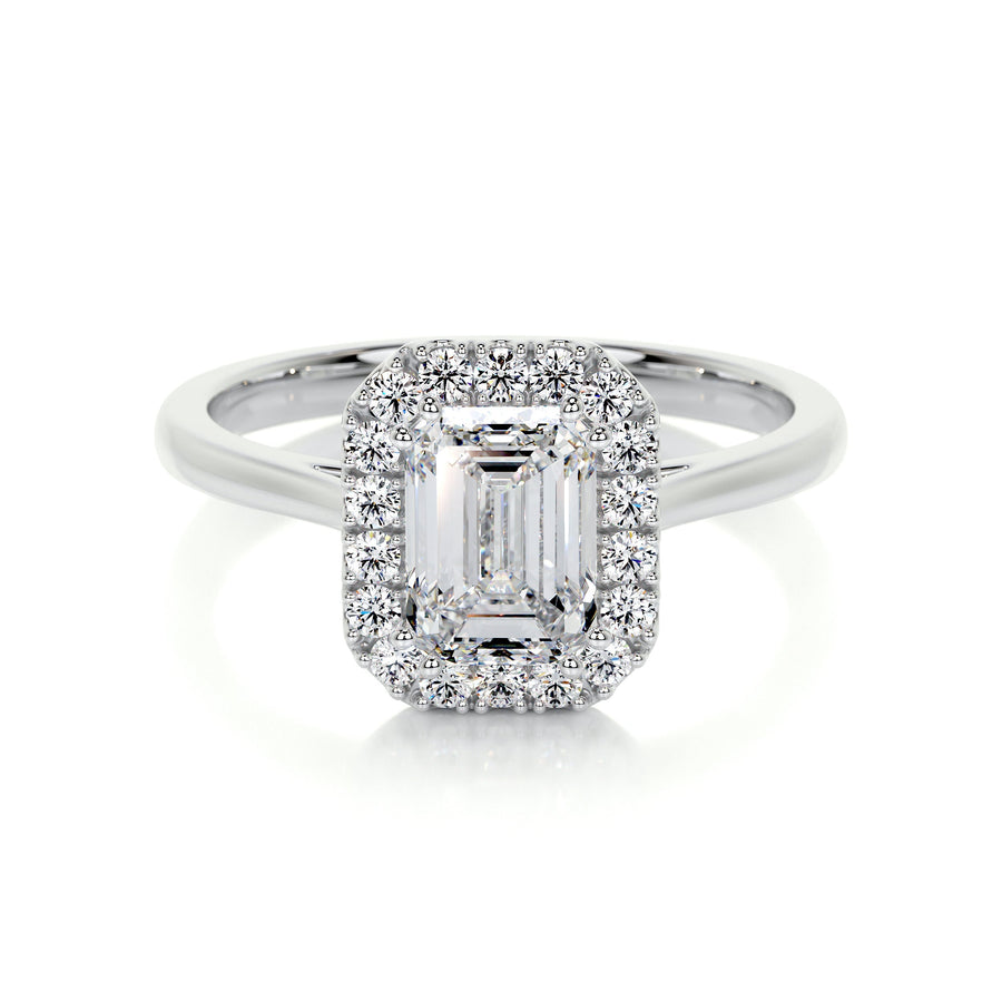 1.0 CT Emerald Halo CVD E/VS2 Diamond Engagement Ring