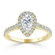 1.0 CT Pear Cut Halo Moissanite Engagement Ring With Pave Setting