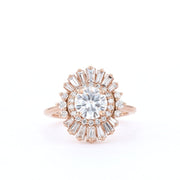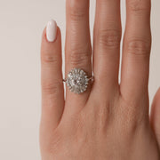 1.0 CT Round Cut Cluster Double Halo Moissanite Engagement Ring