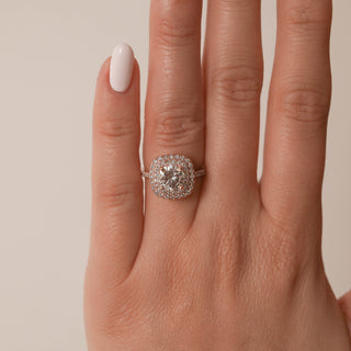 1.0 CT Round Cut Double Halo Moissanite Engagement Ring