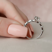 1.0 CT Round Solitaire & Dainty Pave Moissanite Engagement Ring