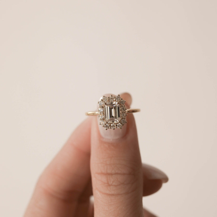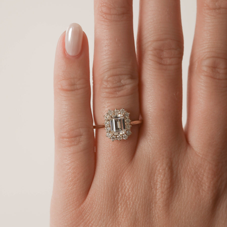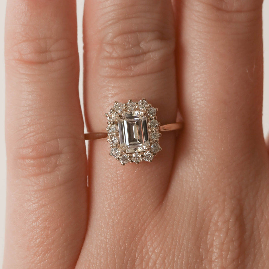 1.04-1.67 CT Emerald Cut Halo Moissanite Engagement Ring