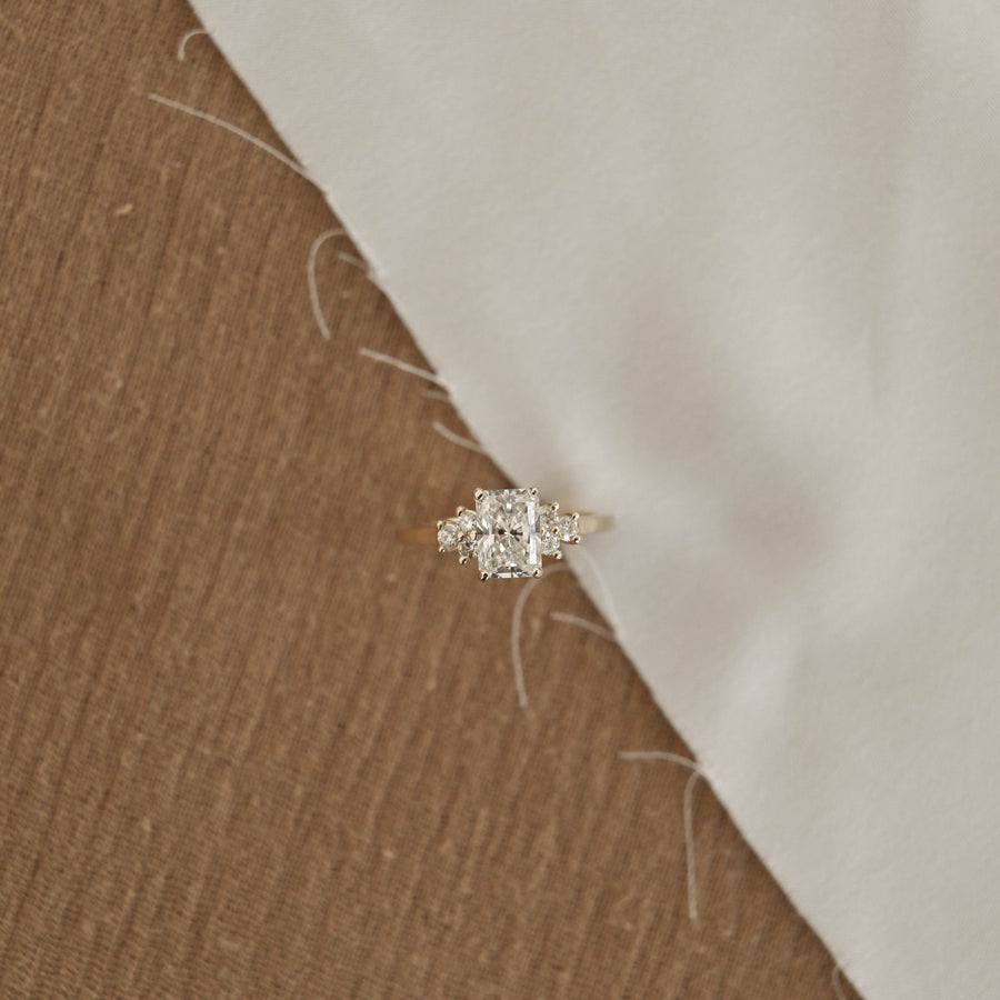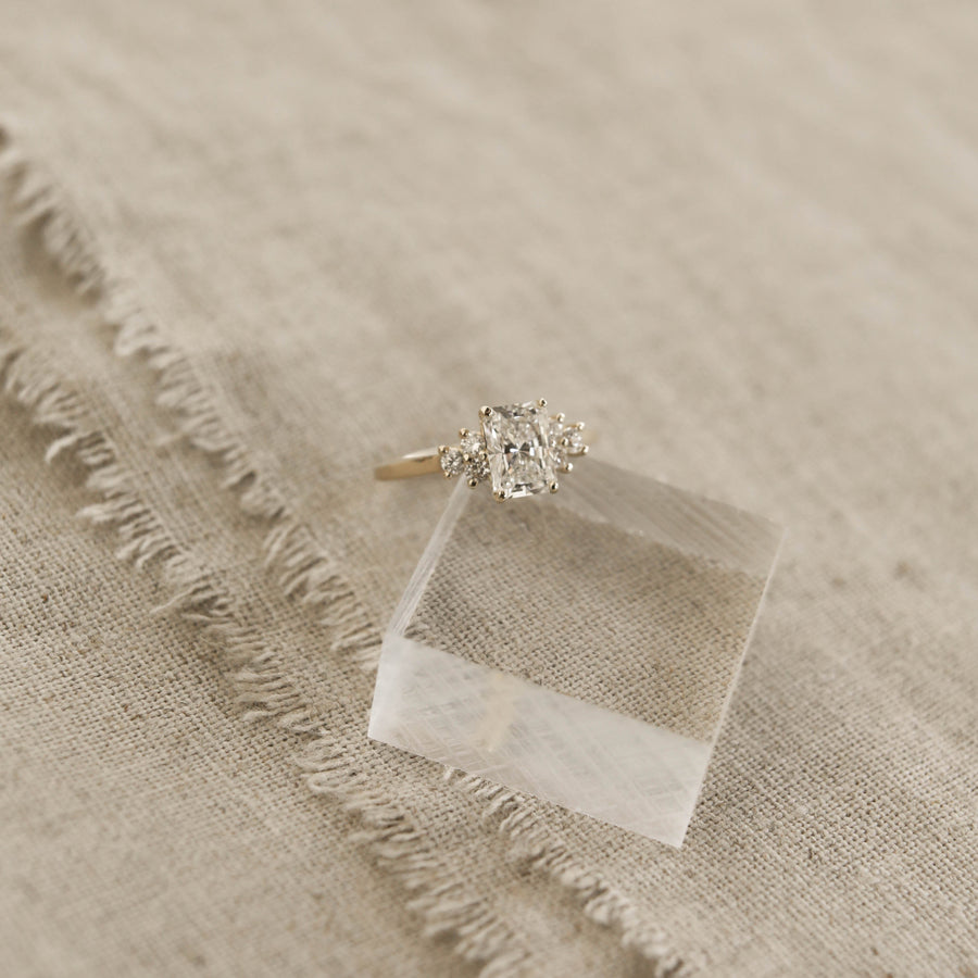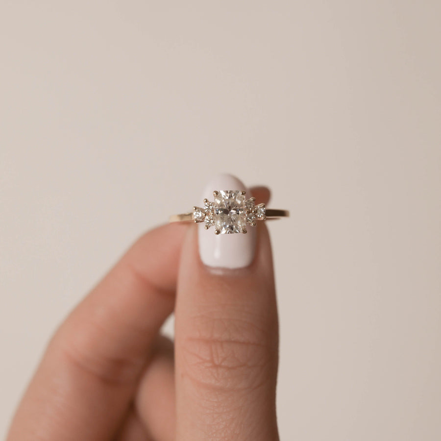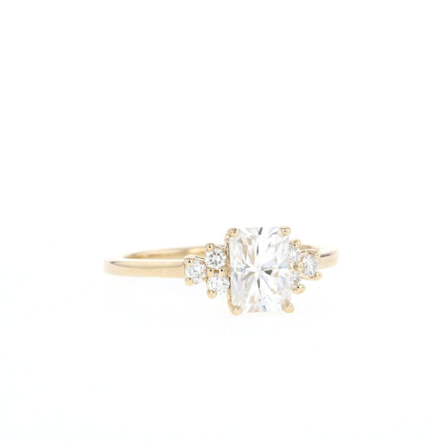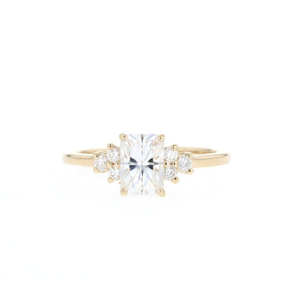 1.04 CT Emerald Cut Cluster Moissanite Engagement Ring