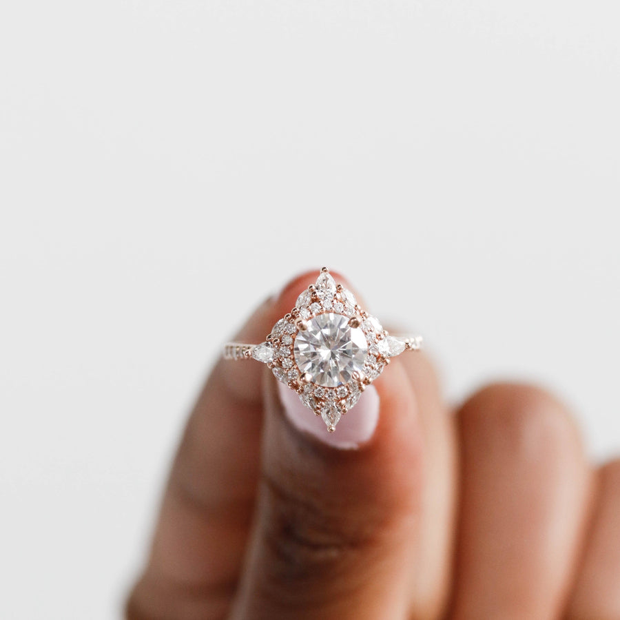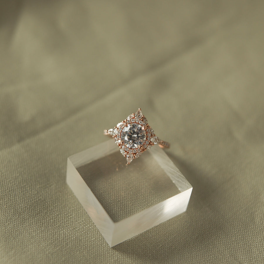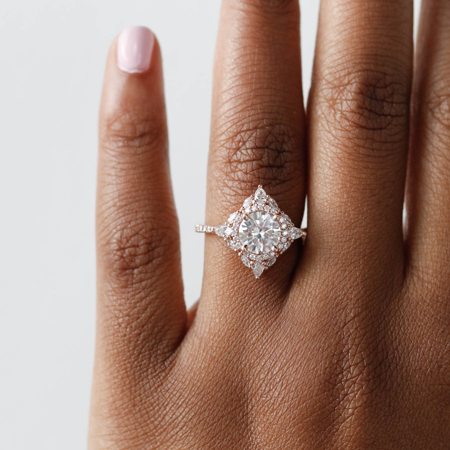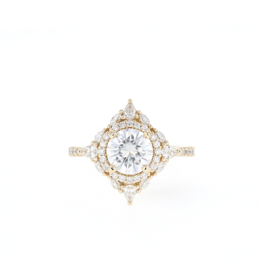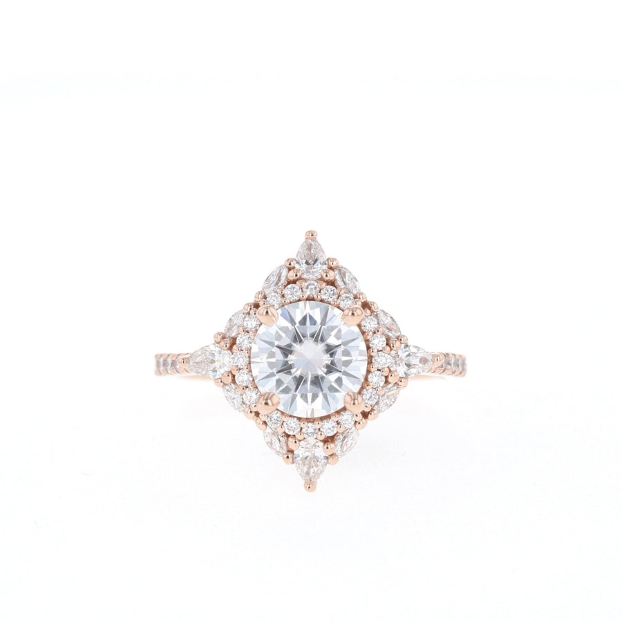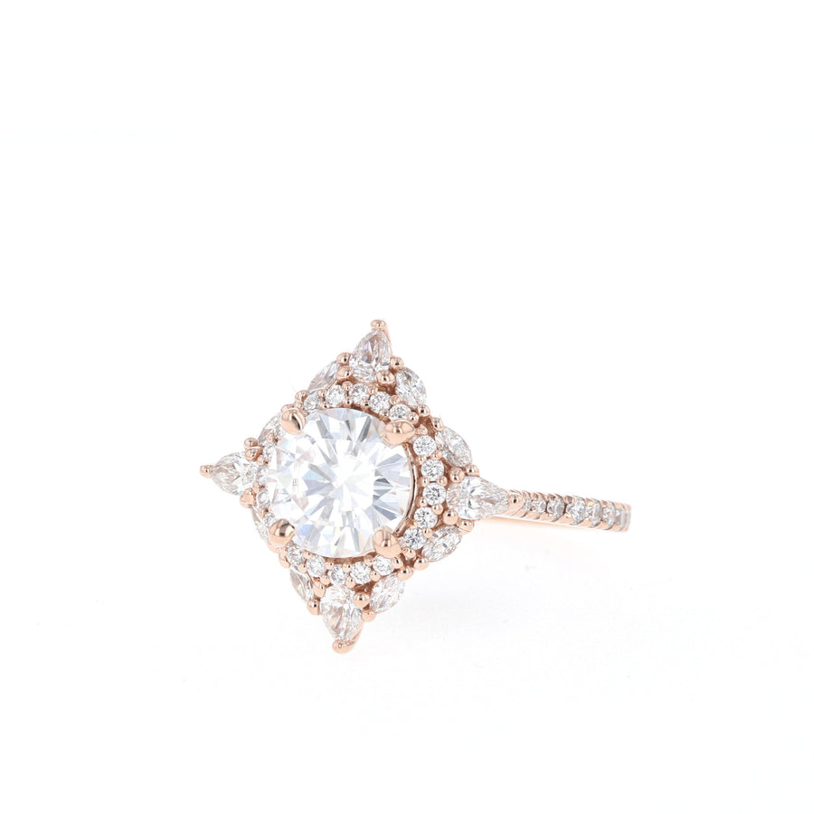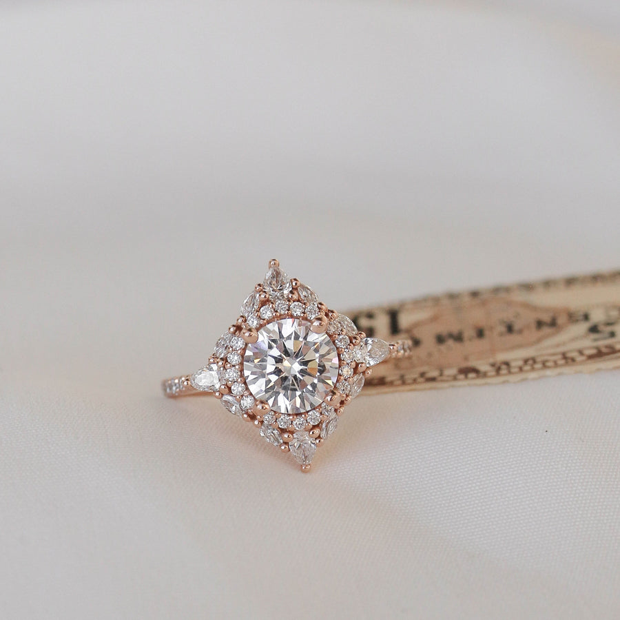 1.25 CT Round Cut Cluster Halo Moissanite Engagement Ring