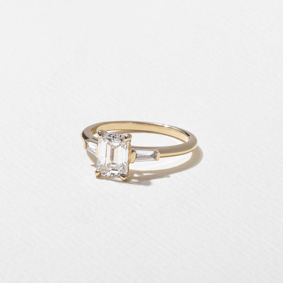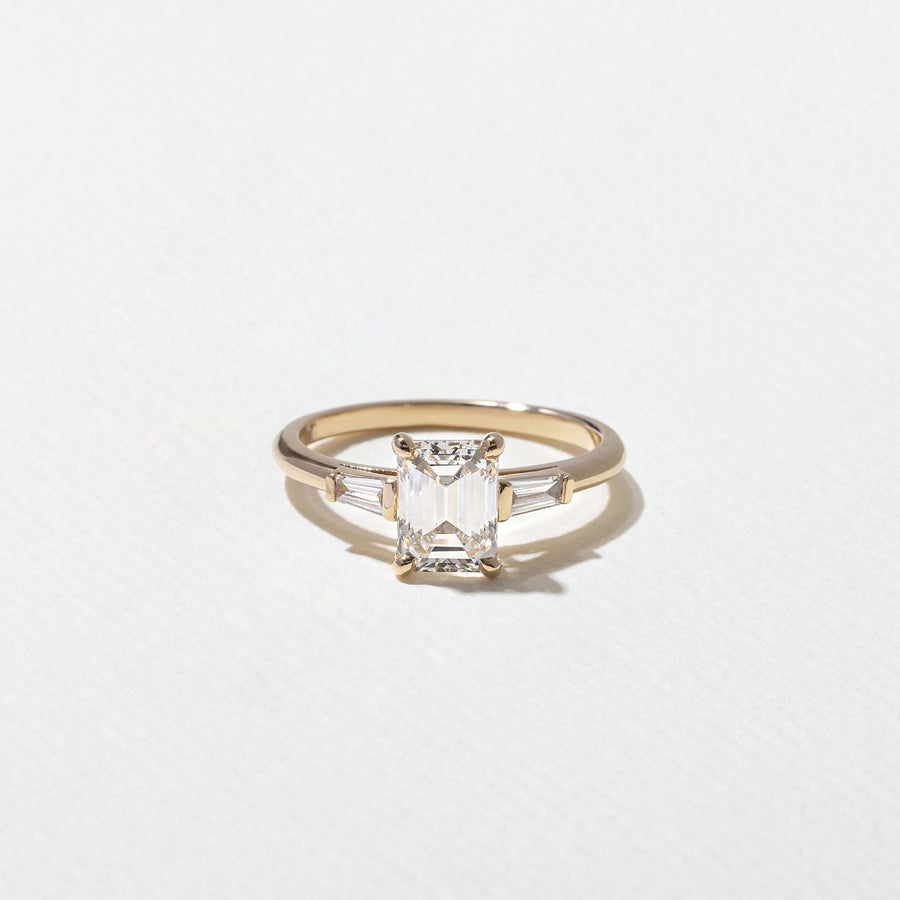 1.28-3.50 CT Emerald Lab Grown Diamond Three Stone Engagement Ring