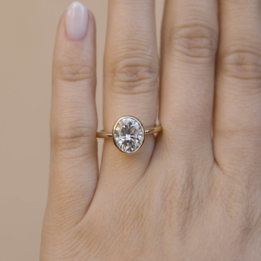 1.33 CT-2.72 CT Oval Cut Bezel Solitaire Engagement Ring